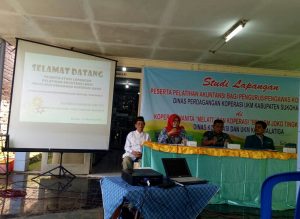 SALATIGA- kamis 15 Maret 2018 Rombongan Peserta Pelatihan akuntasi, pengurus, dan pengawas koperasi yang digelar Dinas Perdagangan, Koperasi, dan UKM Kabupaten Sukoharjo melakukan studi lapangan di kota Salatiga . Rombongan yang dipimpin Kabid Kelembagaan dan Organisasi Disperindagkop dan UKM Kabupaten Sukoharjo diterima oleh Kasi Kelembagaan Dinas Koperasi dan UKM Kota Salatiga, Dian Khorina, SE, MM.