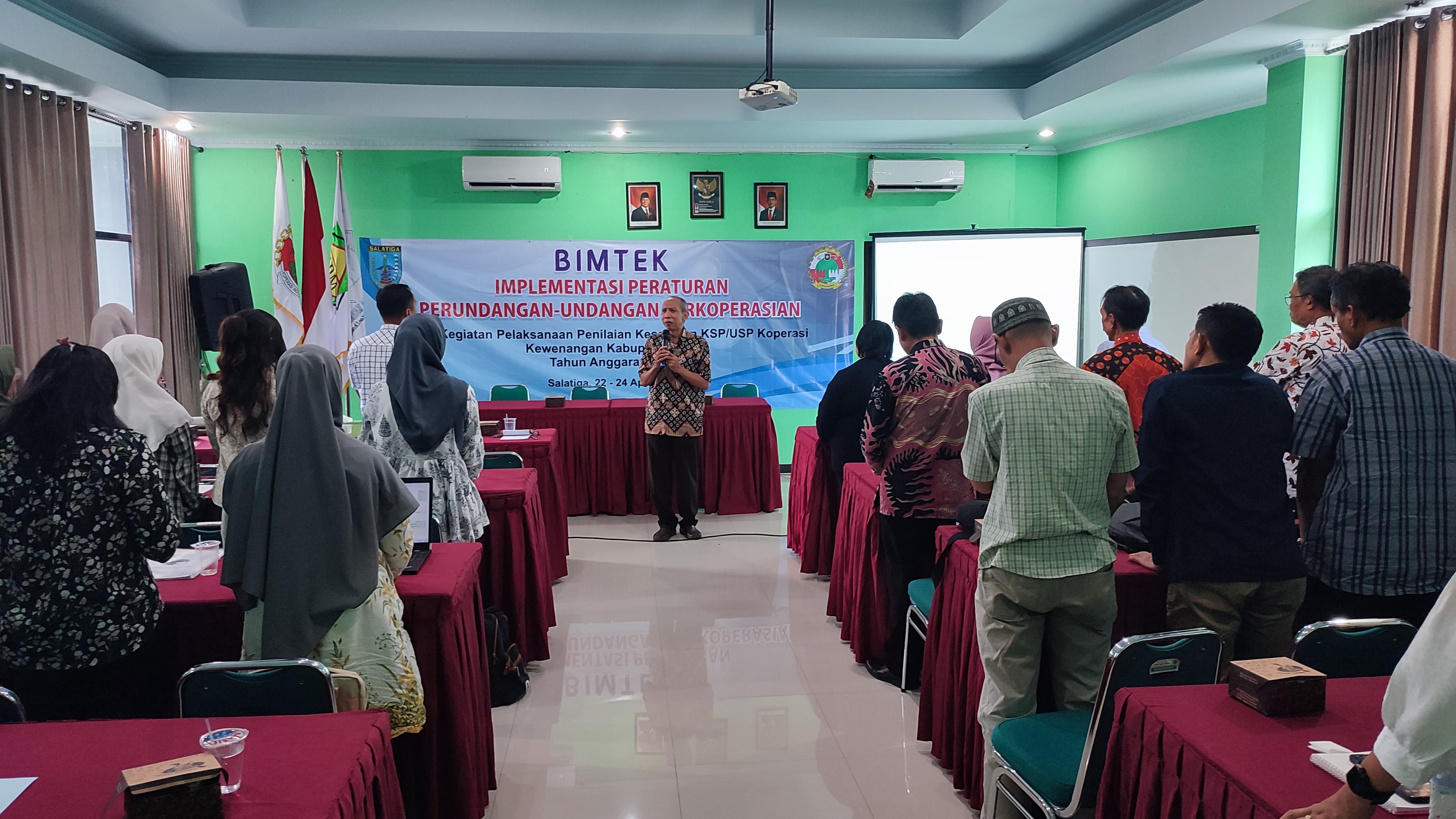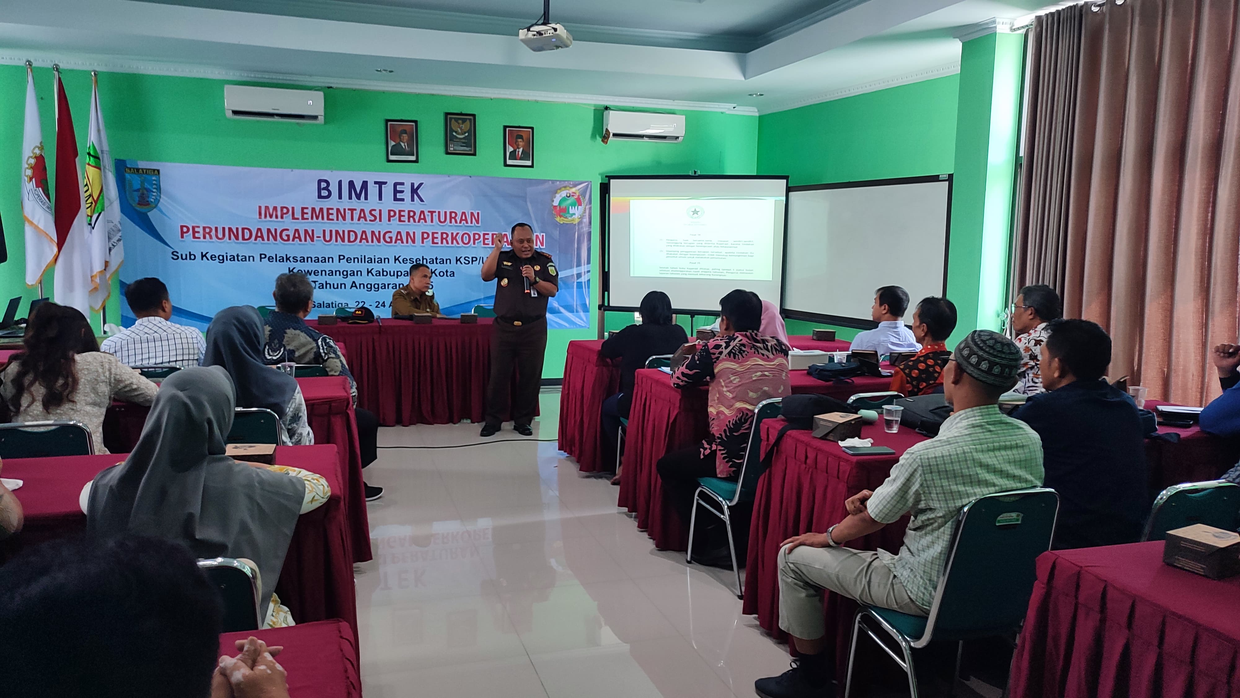 Dinas Koperasi, Usaha Kecil dan Menengah Kota Salatiga menyelenggarakan Bimtek Implementasi Peraturan Perundang-Undangan Perkoperasian (Sub Kegiatan : Pelaksanaan Penilaian Kesehatan KSP/USP Koperasi Kewenangan Kabupaten/Kota Tahun Anggaran 2025) yang diselenggarakan dari tangal 22 s.d 24 April 2025 bertempat di Ruang Serbaguna Lantai 2 KSP Mentari Dana Mandiri (MDM) Salatiga dan diikuti oleh 30 (tiga puluh) peserta perwakilan Koperasi se-Kota Salatiga.