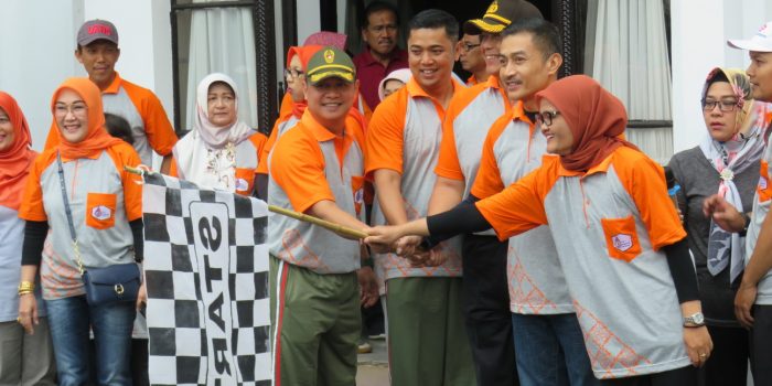 Balaikota- Ribuan peserta tumpah ruah di depan pendopo papak Pemerintah Kota Salatiga. Mereka mengikuti jalan sehat memperingati hari jadi ulang tahun koperasi ke-72 tahun tingkat kota Salatiga, di Halaman Pemkot, Jumat (19/7).