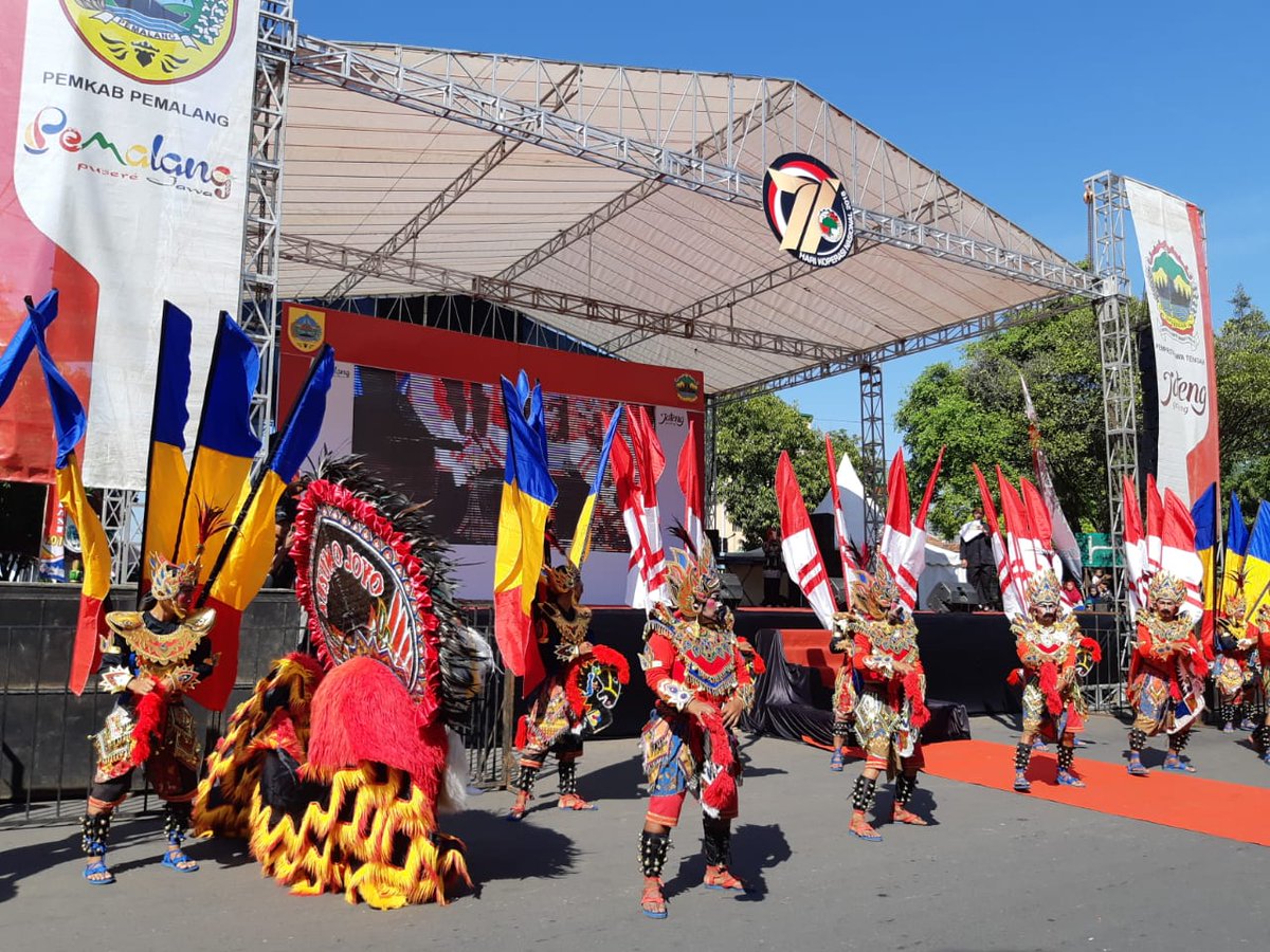 PEMALANG – Kemeriahan Grebeg Hari Koperasi Ke-71 Tahun 2018 bertajuk “Penguatan Koperasi Mendorong Pertumbuhan Ekonomi Nasional” digelar hari ini, Sabtu (7/7/2018). Dentuman musik drum band, perkusi dan delman hias memeriah Taman Pakis, Jalan Jenderal Ahmad Yani, Pemalang.