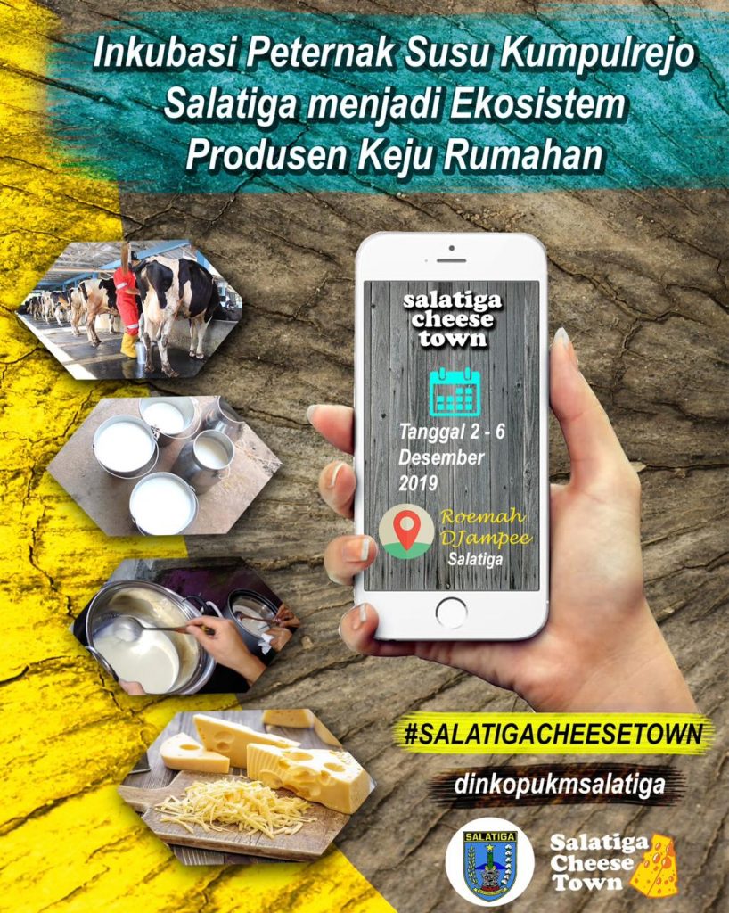 Senin, 3 Desember 2019 Kepala Dinas Koperasi, Usaha Kecil dan Menengah kota Salatiga, Ir. Wuri Pujiastuti, MM Membuka Kegiatan Pelatihan dan Pendampingan UMKM Sektor Prosuk Jasa/Komunitas/ekonomi Kreatif. Kegiatan ini memiliki tema Inkubasi peternak susu kumpulrejo Salatiga menjadi ekosistem produsen keju rumahan. Kegiatan ini rencananya akan dilaksanakan di Roemah Djampe, Cebongan Salatiga Selama 5 hari dari tanggal 2 s.d 6 Desember 2019.