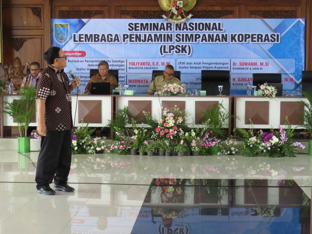 Seminar nasional Lembaga Penjamin Simpanan Koperasi (LPSK) ini juga menghadirkan tiga narasumber yakni DR Suwandi MSi dari Kemenkop dan UKM RI, Marwata Ph.D dari UKSW Salatiga dan H Djulay Iskandar SE MM dari Kospin Jasa Pekalongan.